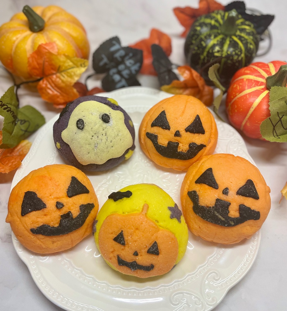 大人気のメロンパンをアレンジしたハロウィンパン。クッキー生地は型抜きする為、お子様から大人まで上手に作れます。冷凍可能の為、ハロウィン当日まで保存できます。